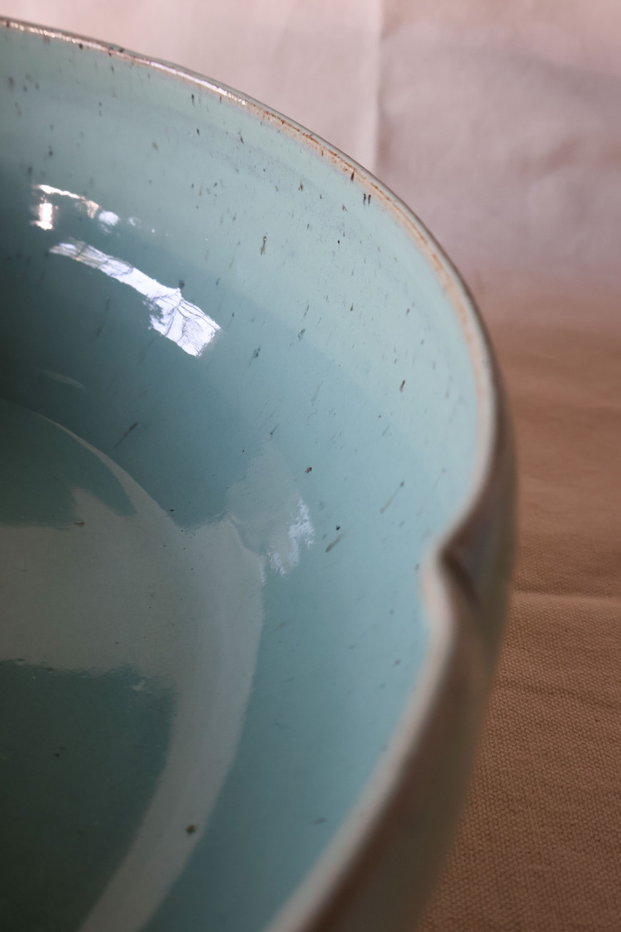 Modelados manualmente, os bowls apresentam variações sutis de forma e esmaltação, exaltando as marcas do processo artesanal. O tom verde acinzentado acetinado, com leve transição de tonalidade, remete à estética natural e serena.